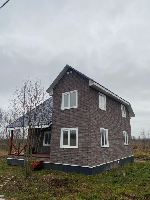 Материал стен — СИП панели европейского завода «ЭкоЕвроДом» г.Москва; с отделкой: пол ламинат, стены – обои, потолки натяжные; наружная отделка хауберк; кровля – металлочерепица, окна ПВХ двухкамерные, межэтажная лестница деревянная.